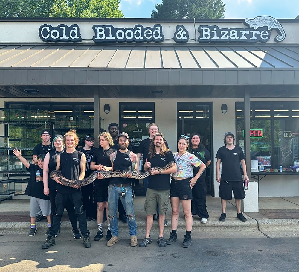 “We’re a reptile store. Our grand opening in 2019 was such an amazing promotion — so we decided to throw an annual party to celebrate our shop’s birthday. Free food is provided by local restaurants, and a keg comes from our friends at a local brewery. Throughout the day, we’ve had circus and sideshow performances, including a man who ate light bulbs and one of the world’s only female sword-swallowers. (We really wanted fire-breathing, but the fire marshal said no.) We frequently have big shop discounts, plus animals and activities for kids. It’s always a hit with our customers!” — Michael and Shay Edelen and Patrick Kamberos, owners of Cold Blooded & Bizarre, Charlotte, NC